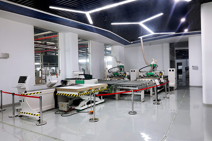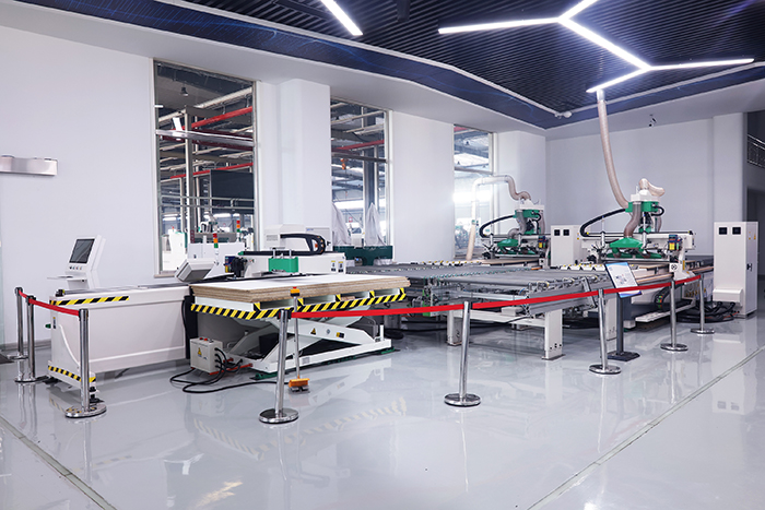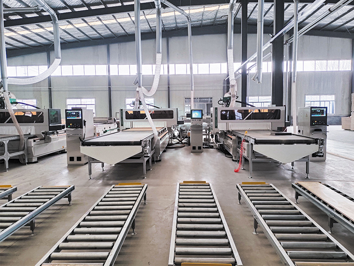 3,同一訂單可以快速推進,中控系統(tǒng)自動分配板材進入可加工工位,有效推進同批次同訂單同花色板材依次加工。