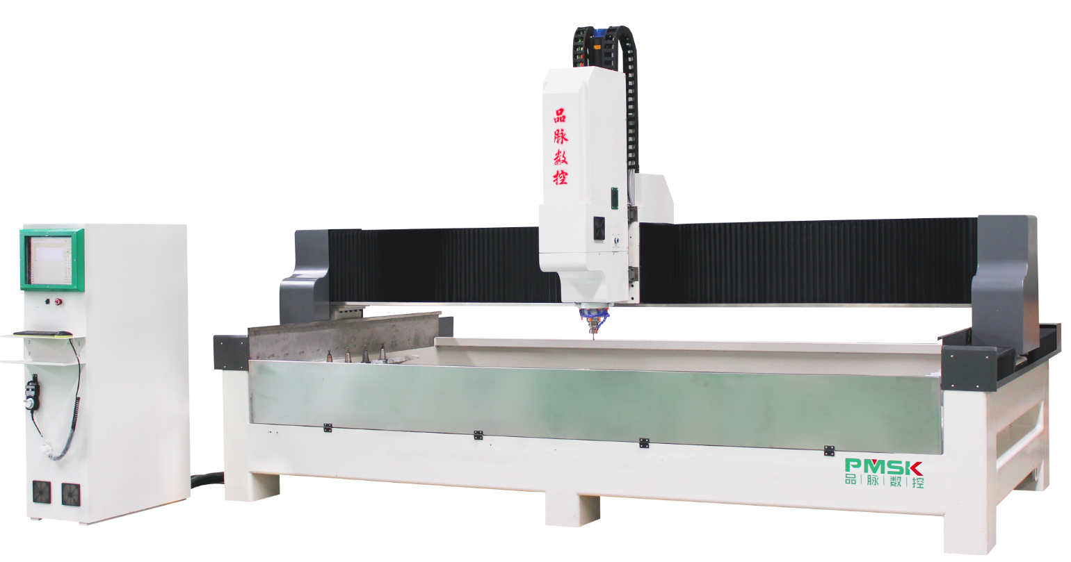 石材數(shù)控加工中心的控制系統(tǒng),它的功能是接收輸入的石材臺面加工尺寸信息,經(jīng)自動計算處理發(fā)出各種控制命令,如向伺服驅(qū)動分配相對位移指令信號,并由此使機床主軸攜帶各種刀具在伺服電機的驅(qū)動下,按預(yù)定的軌跡運動加工石材臺面開孔、磨邊、自動換刀拋光等石材臺面所需工藝。