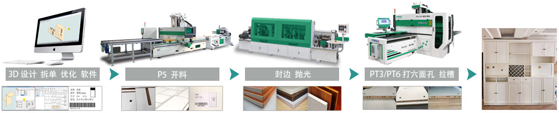 4. 本型大板套裁CNC,可承受高強度滿負荷運行,配套自動貼標機進行大板套裁下料,適合組建板式家具智能全自動生產(chǎn)流水線。