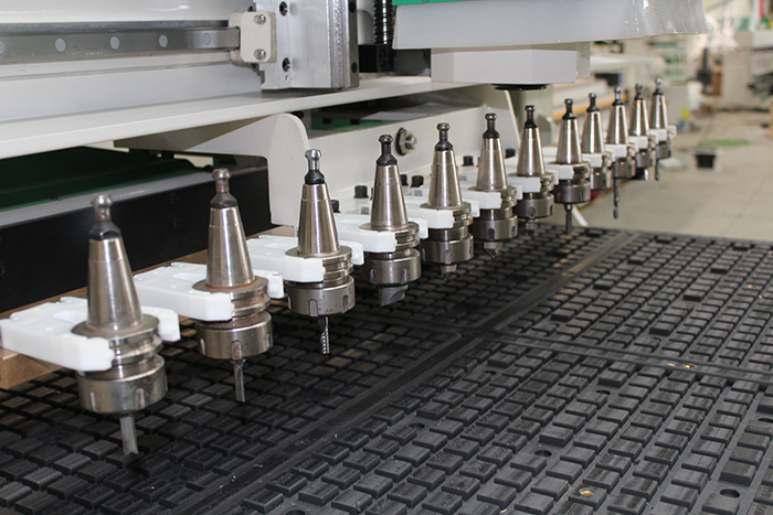 直排鉆包加工中心,是一款既能夠?qū)崿F(xiàn)定制家具生產(chǎn)又能實現(xiàn)櫥柜門板銑形、雕刻的數(shù)控設(shè)備,機器搭配的自動換刀主軸,能夠進(jìn)行高速切割和門形雕刻,搭配的9垂直排鉆組能夠快速鉆孔,提高定制家具的生產(chǎn)效率。此款機型性價比高,復(fù)合加工能力強,是絕大部分家具廠首選機型。