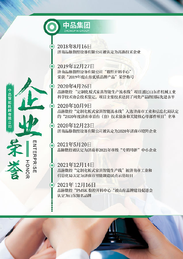 濟(jì)南品脈數(shù)控設(shè)備有限公司擁有濟(jì)南高新區(qū)、德州齊河兩大生產(chǎn)廠區(qū),主要從事智能化數(shù)控設(shè)備的設(shè)計(jì)、研發(fā)與生產(chǎn),為專業(yè)家具制造商提供工業(yè)4.0定制家具生產(chǎn)線及智能工廠整體規(guī)劃解決方案。