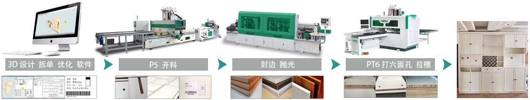 1. 板件一次性定位加工六面鉆孔與開槽,板件孔槽之間相對精度更高,整體櫥柜成品精度更高;