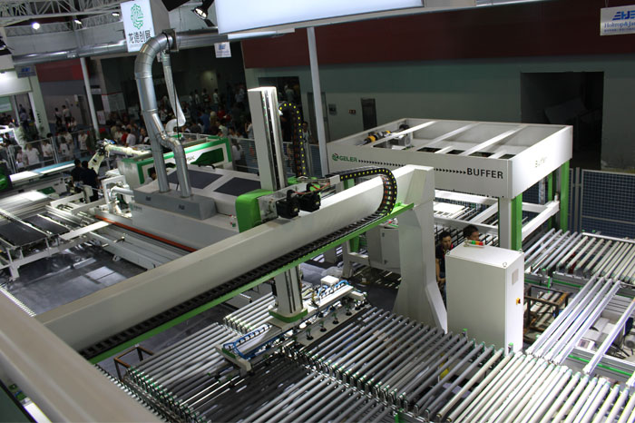 品脈數(shù)控定制家具工業(yè)4.0智能生產(chǎn)連線(xiàn)主要以無(wú)人化工廠為主,真正把各個(gè)環(huán)節(jié)串聯(lián)起來(lái),把開(kāi)料、封邊、鉆孔、分揀、包裝等流程一體化,從而實(shí)現(xiàn)無(wú)人式的工廠模式,整套板式家具工業(yè)4.0生產(chǎn)連線(xiàn)硬件部分涵蓋開(kāi)料設(shè)備、多軸搬運(yùn)機(jī)器人、封邊回轉(zhuǎn)線(xiàn)系統(tǒng)、動(dòng)力傳輸線(xiàn)、龍門(mén)抓料機(jī)、六面鉆打孔設(shè)備、自動(dòng)分揀系統(tǒng)等通過(guò)總控系統(tǒng)與智能軟件實(shí)現(xiàn)自動(dòng)化生產(chǎn)。